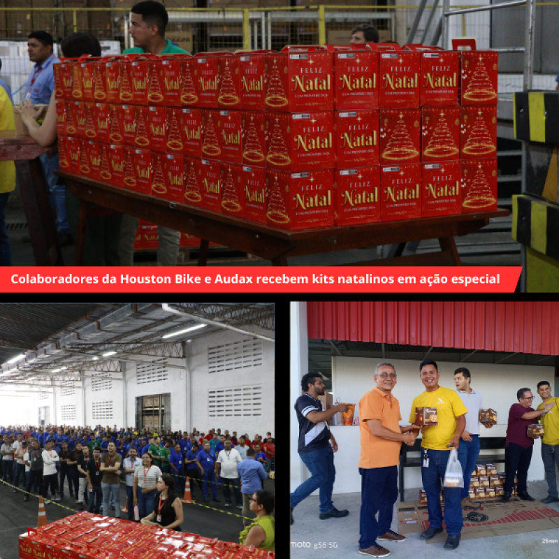 Em Teresina, os colaboradores da Houston Bike receberam chester, panetone e espumante, em uma ação marcada pelo clima de união e gratidão. Já em Manaus, a Audax realizou a entrega de espumantes, panetones e lembranças para as crianças, tornando o momento ainda mais especial para as famílias.
